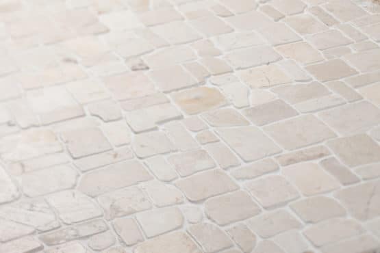 Natural stone marble mosaics and tiles. To be used on floors and on walls. Perfectly suitable for floor heating and in wet spaces like bathrooms and saunas. Also suitable for outside use in cold environments. Most of our products are tumbled with a matt finish. But some mosaics and tiles have polished, honed or chiselled surfaces. Colours can vary because this is all natural stone (marble, travertine, lime stone, andesite, slate). Colours intensify after installation and treatment with a sealant protector and in use.