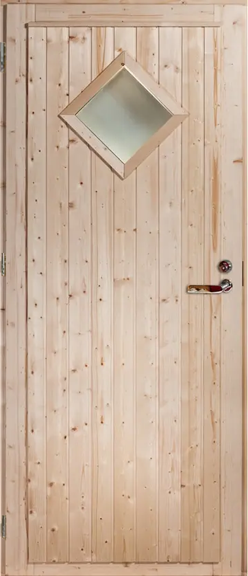 Exterior door Pine/Spruce (‘Diamond’ with window) 9×21 – 888x2078mm (left) lock 4190