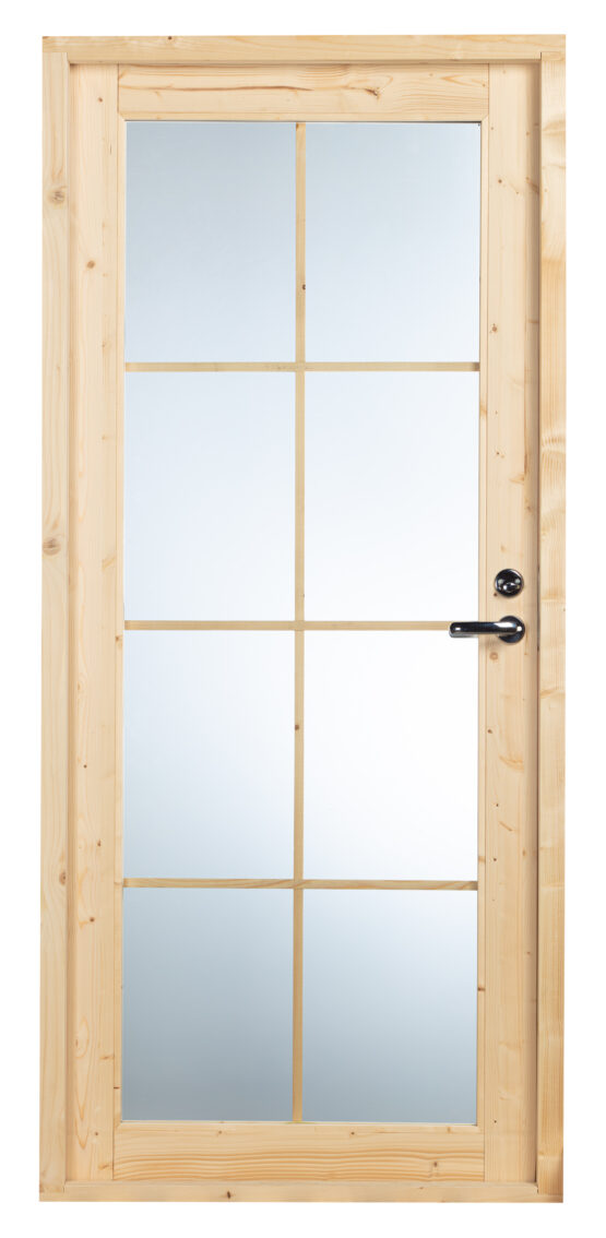 Uksed on valmistatud kvaliteetsest Põhja-Euroopa kuuse- ja männipuidust. Kasutame alati 12 mm jämedust topeltklaasi. Meie paneelid on 12 mm jämedused ja nende isolatsioonivõime on hea. Lisaks on sise- ja välispaneeli vahel 42 mm kokkupressitud mineraalvillakiht/EPS. Kõigil meie ustel on õhutuspilu tuuleisolatsiooni tagamiseks.